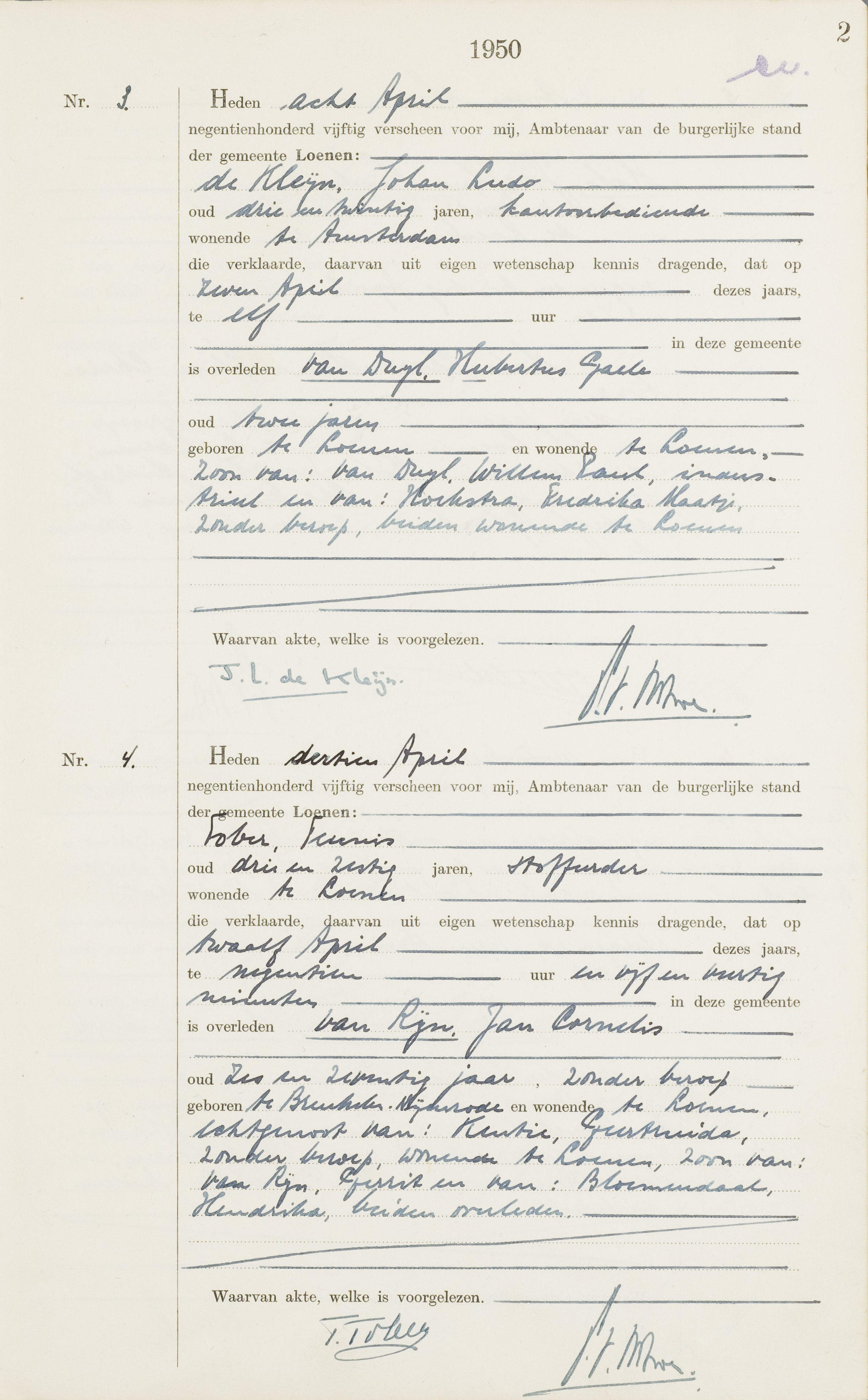 Loenen BS Overlijden 1950 3-4