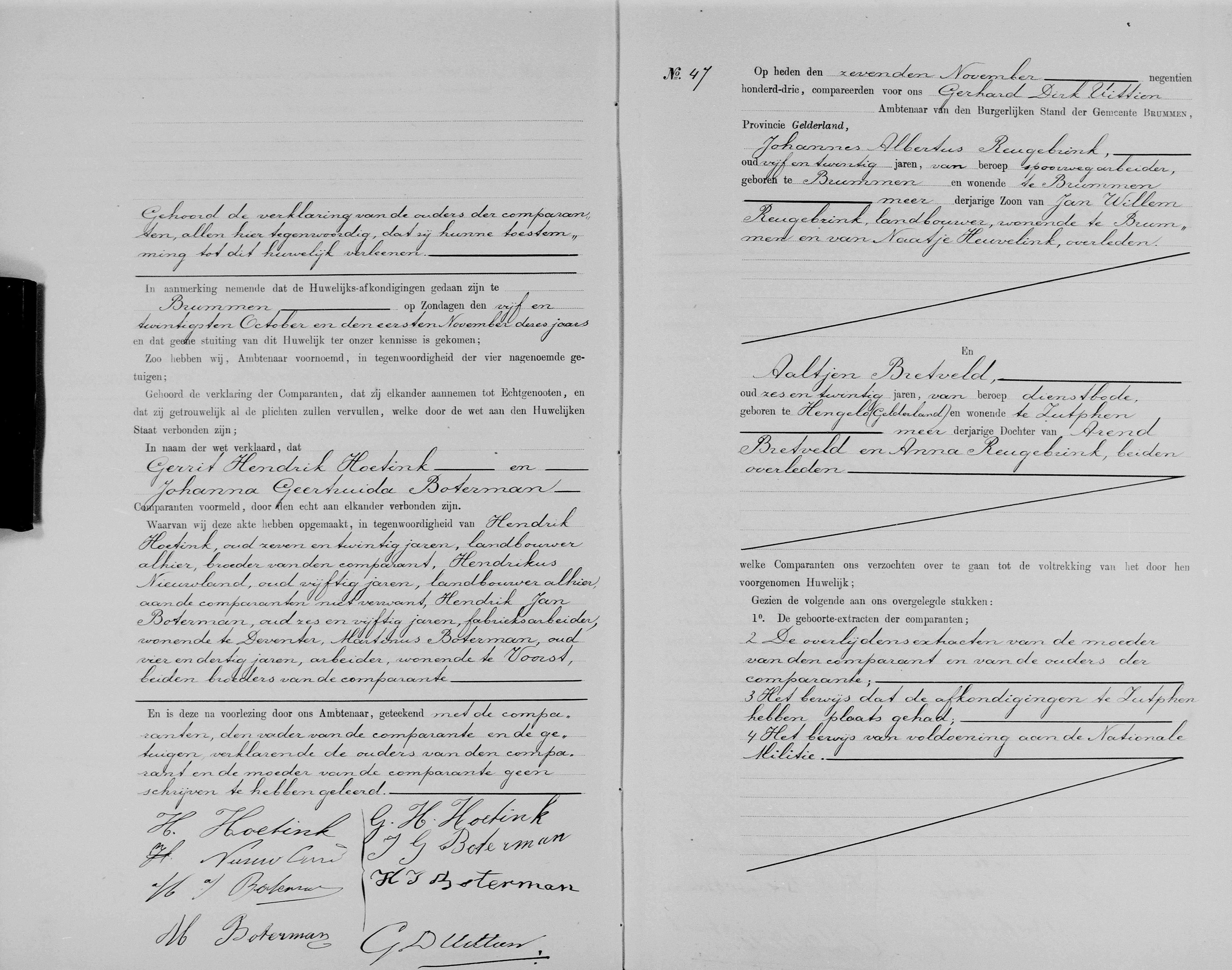 Marriage, Family of Reugebrink, Johannes Albertus and Bretveld, Aaltjen