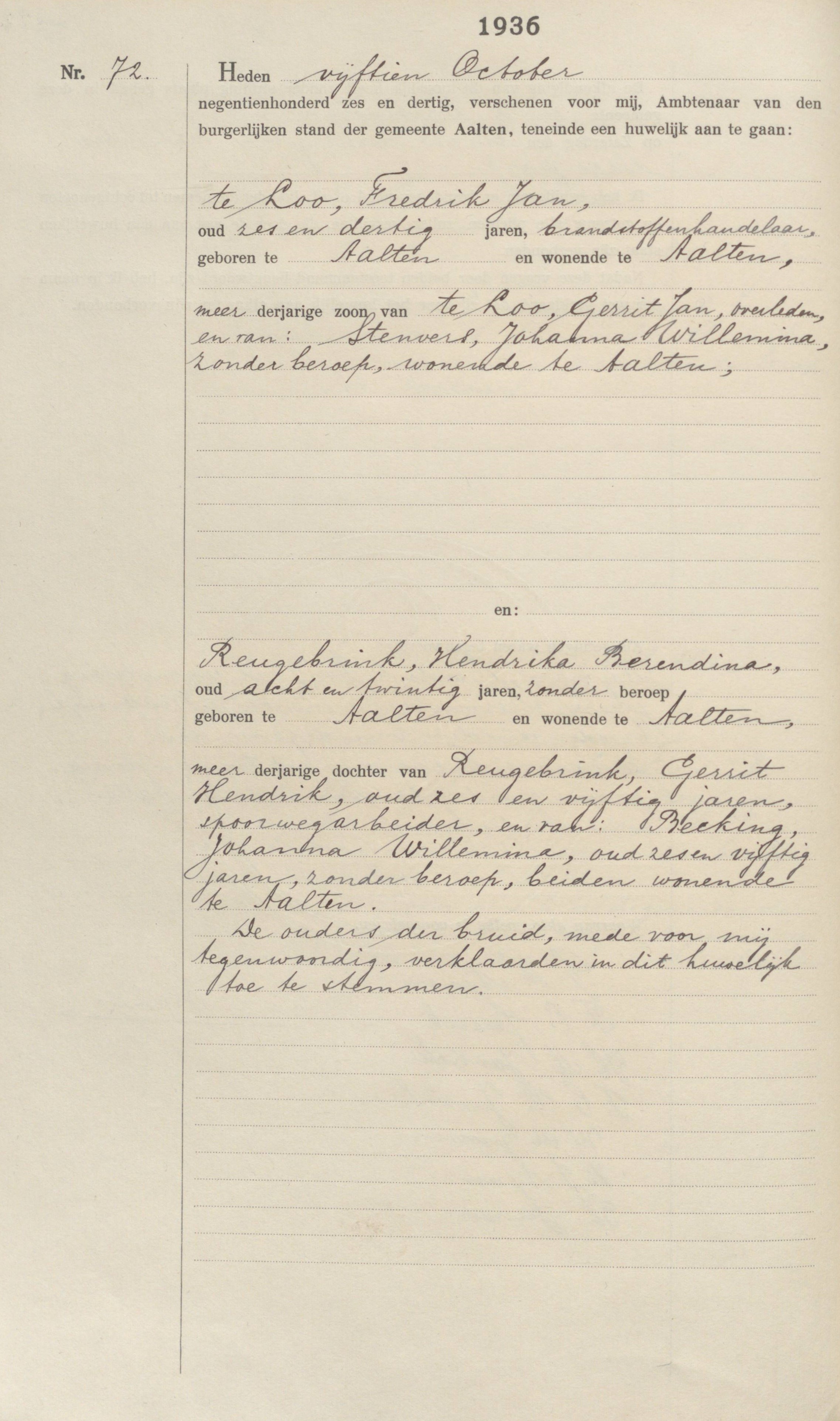 Marriage, Family of te Loo, Fredrik Jan and Reugebrink, Hendrika Berendina