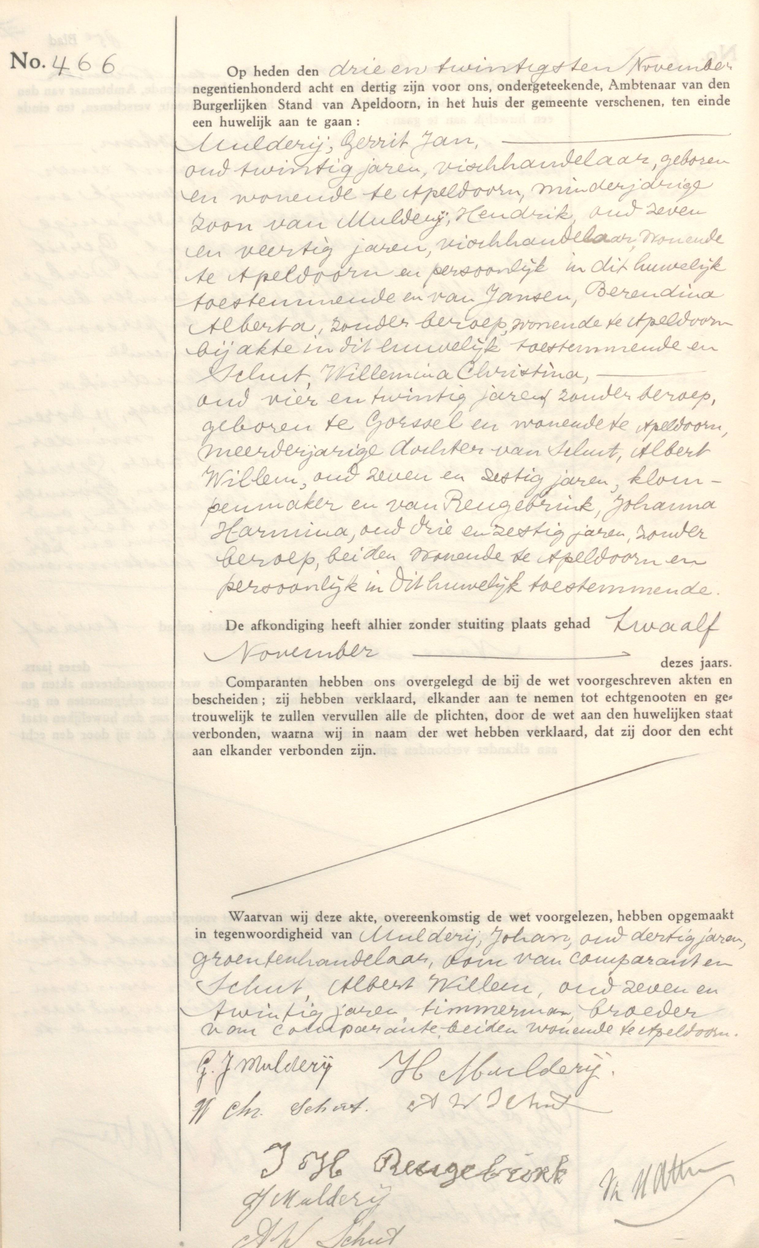Marriage, Family of Mulderij, Gerrit Jan and Schut, Willemina Christina