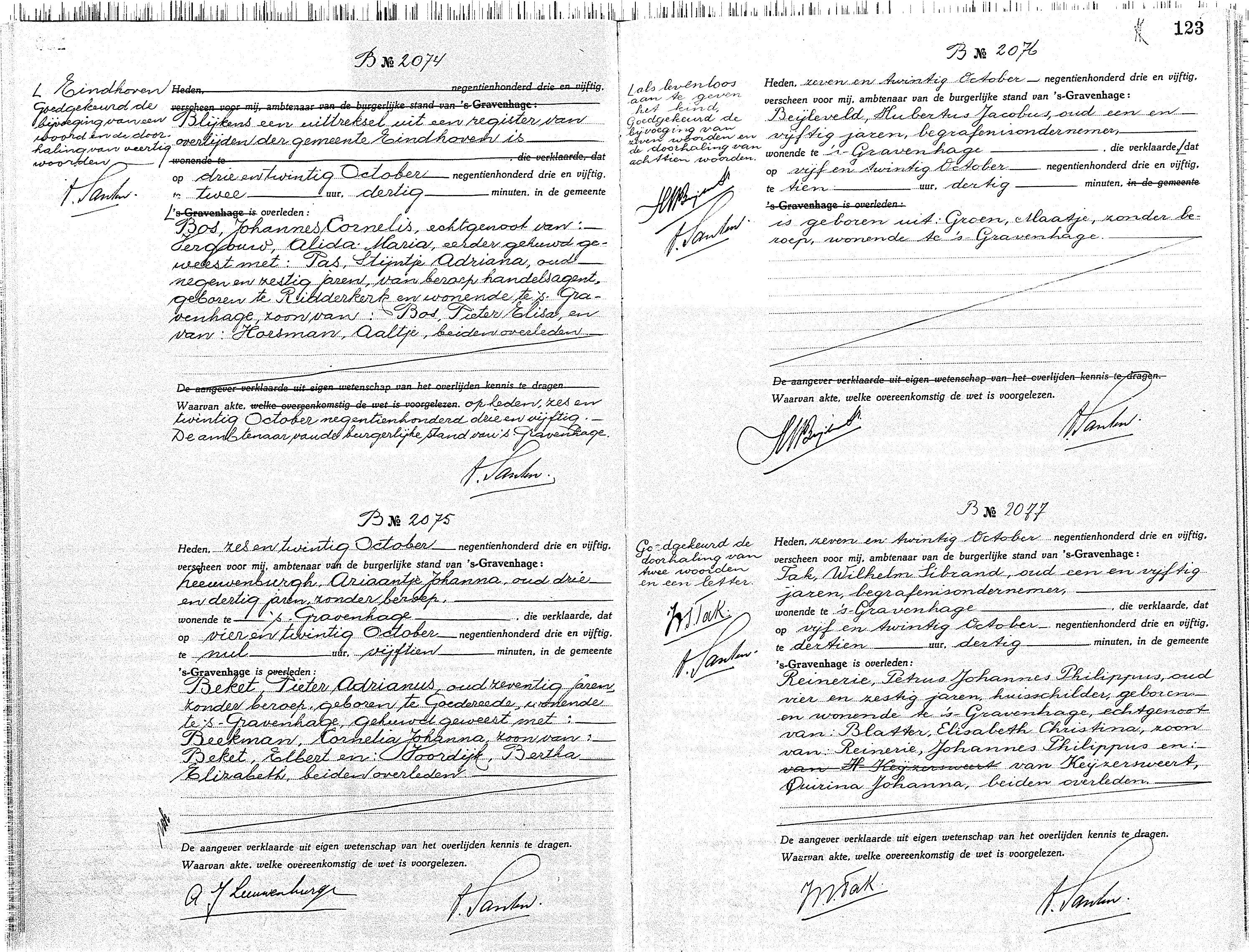 's-Gravenhage BS Overlijden 1953 B2074-B2077