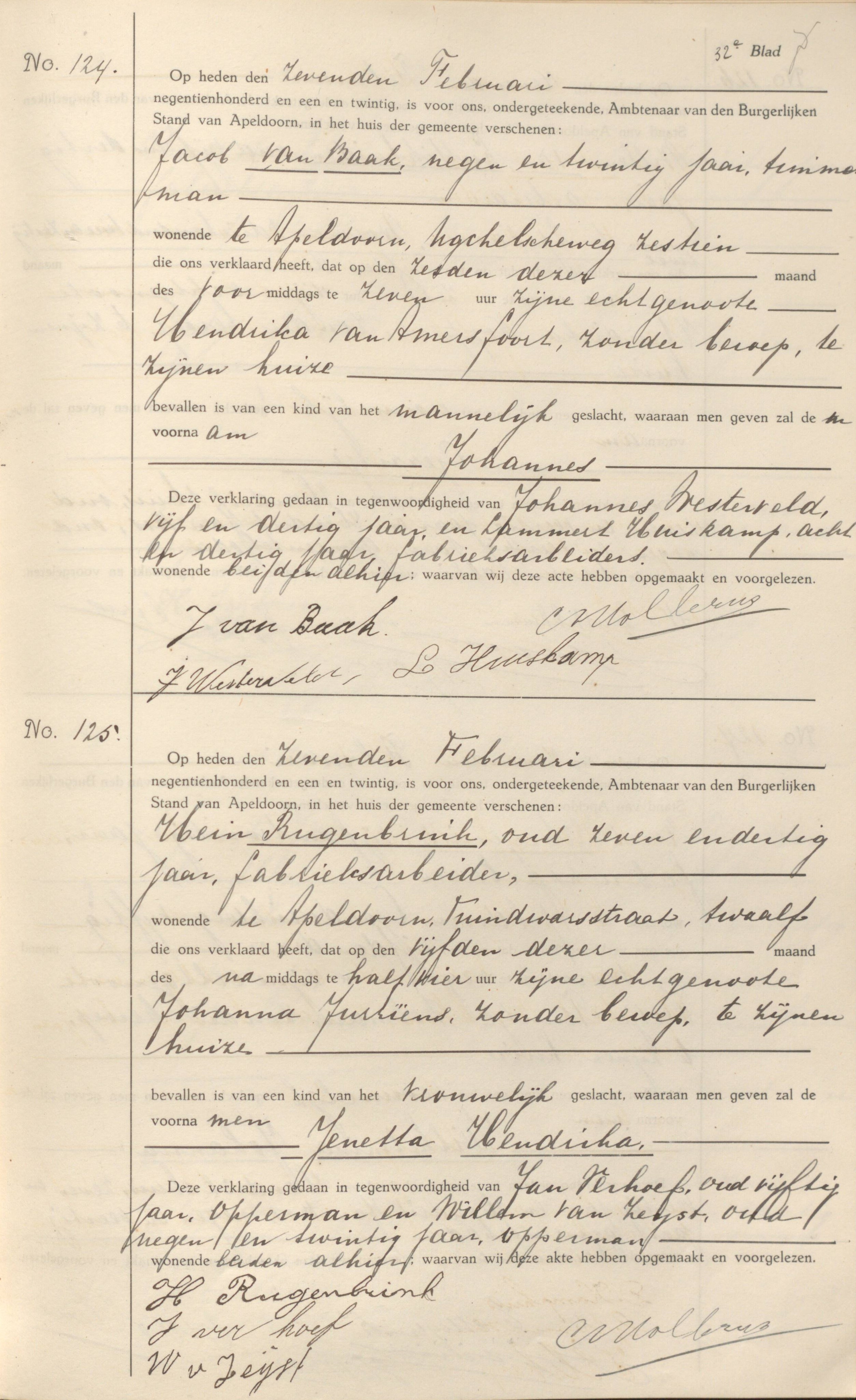 Apeldoorn BS Geboorte 1921 124-125