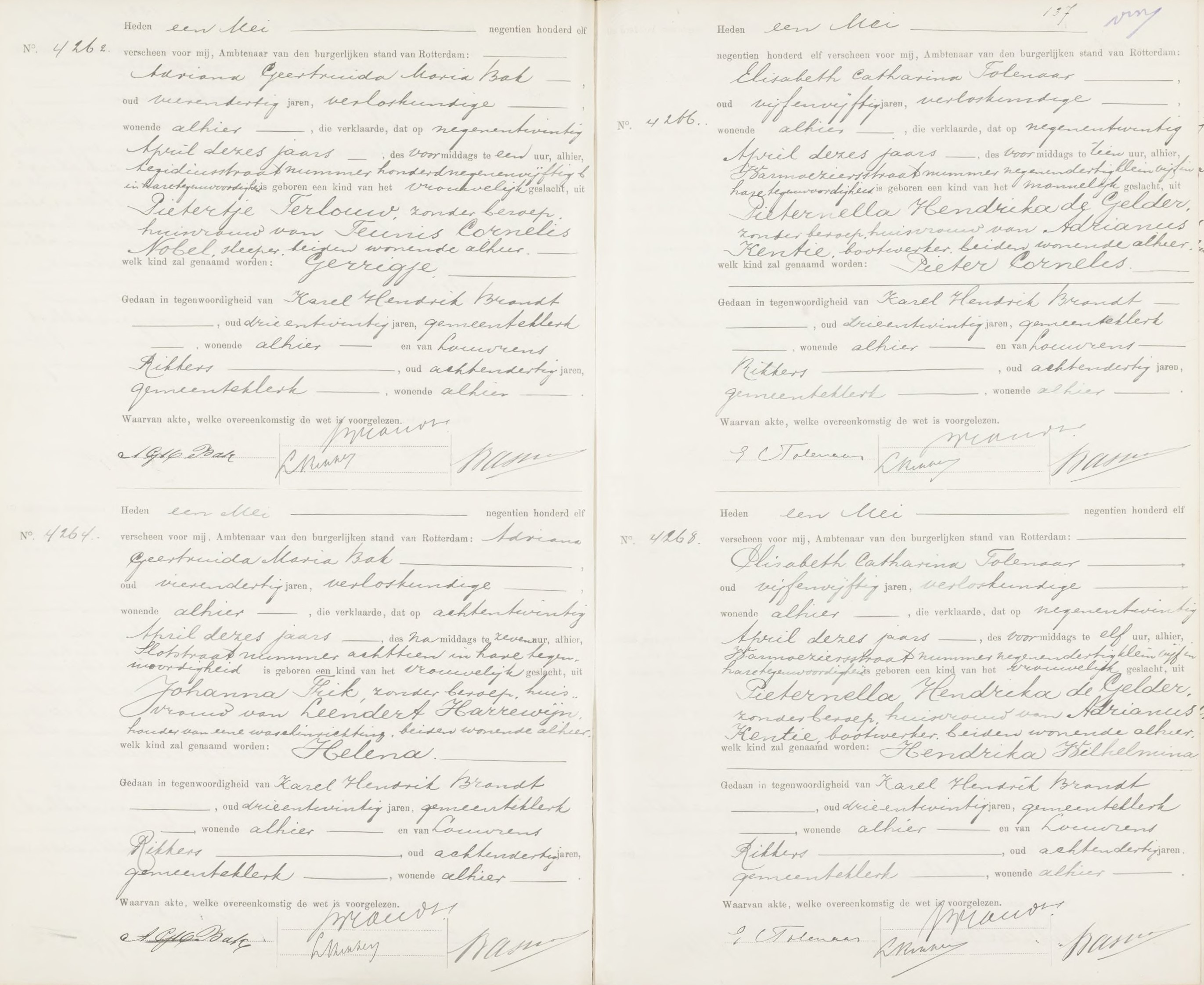 Rotterdam BS Geboorte 1911 4262-4268 even