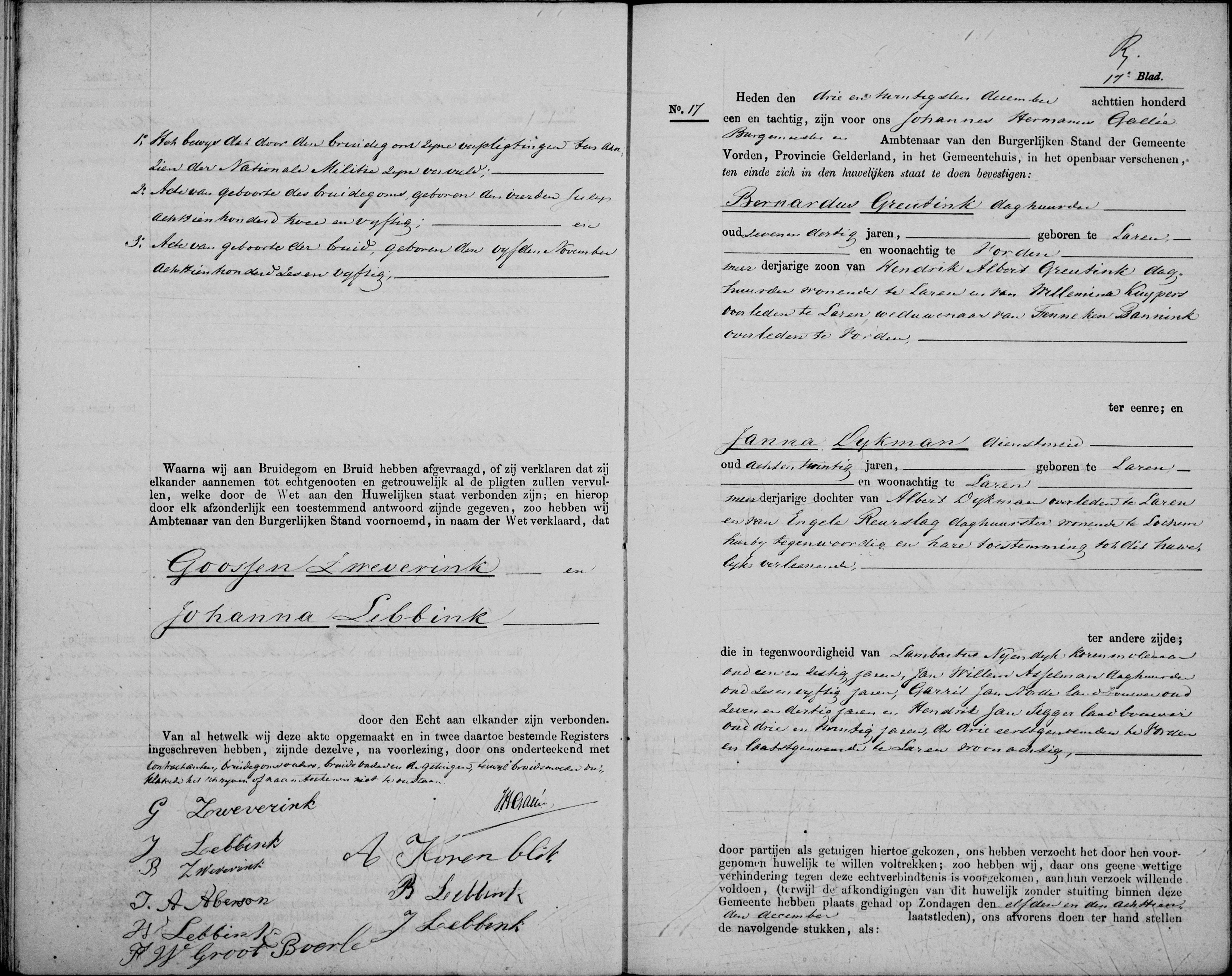 Marriage, Family of Zweverink, Goossen and Lebbink, Johanna