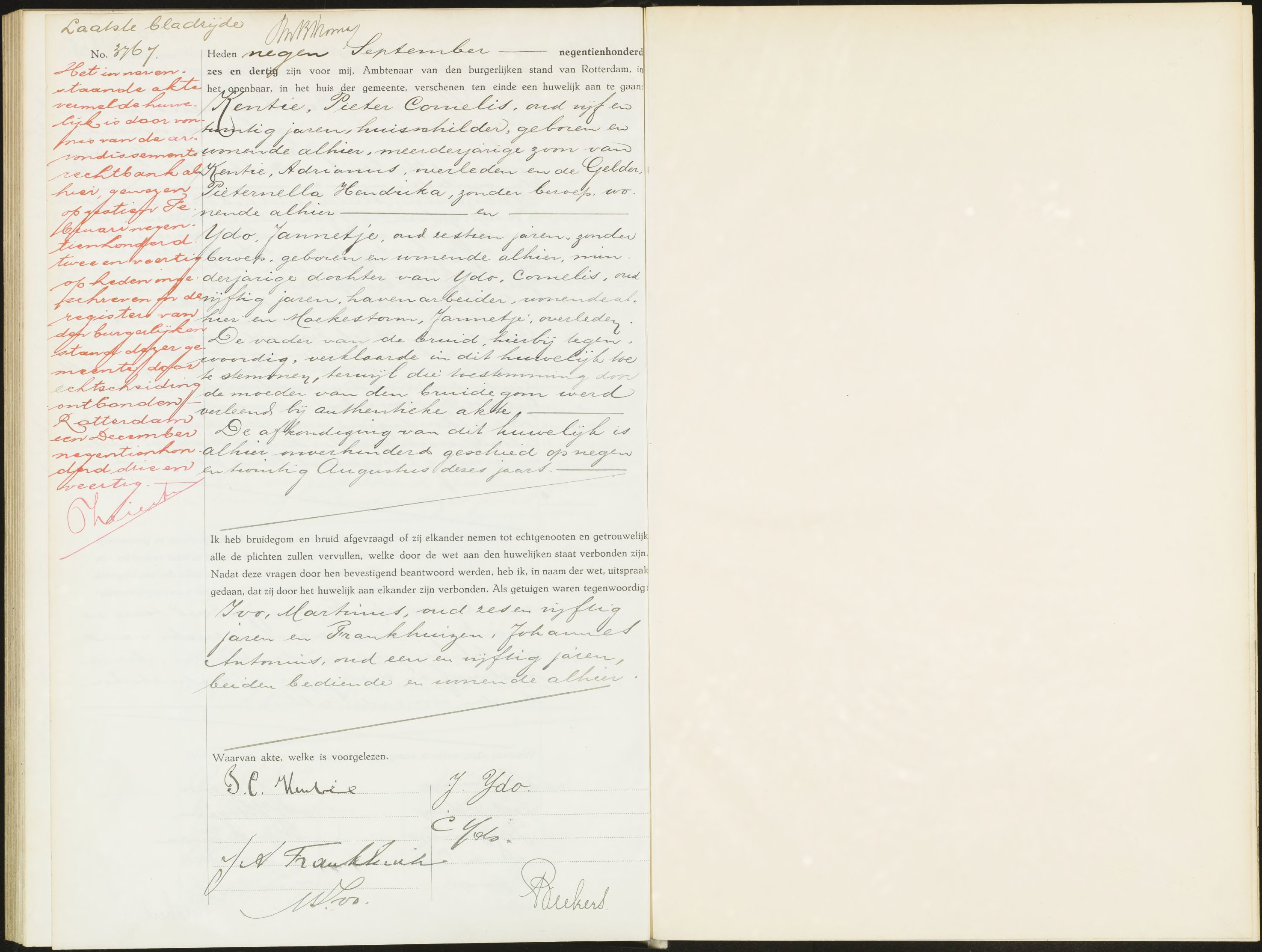 Rotterdam BS Huwelijk 1936 3767 oneven