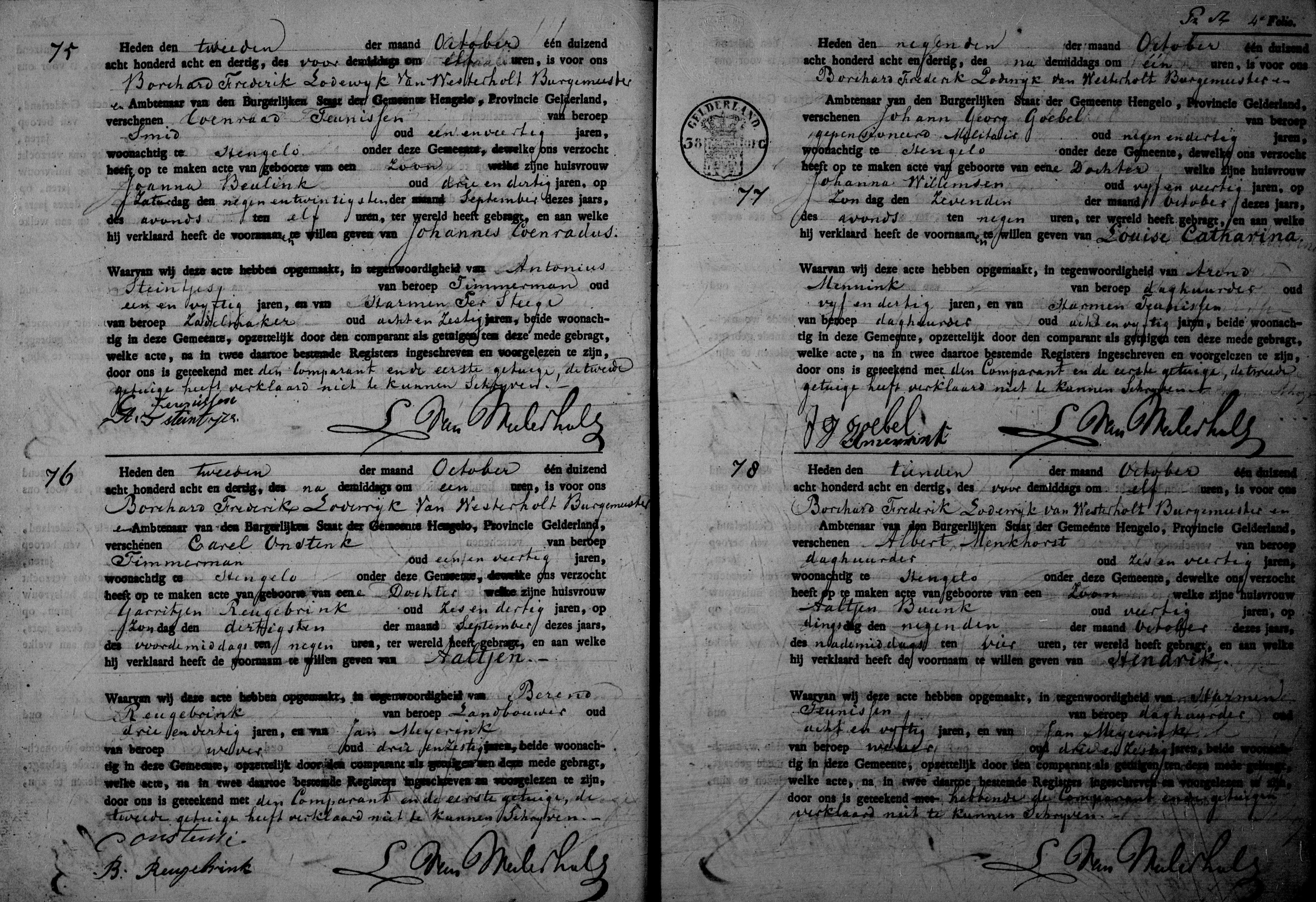Hengelo (Gelderland) BS Geboorte 1838 75-78